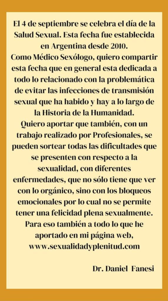 4 DE SEPTIEMBRE DÍA DE LA SALUD SEXUAL Dejá un comentario / SEXUALIDAD, Sin categoría / Por Daniel Fanesi